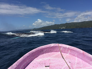 Dominikaanis on 15.jaanuar-15.märts vaalade paaritumisaeg, 3000 kuni 5000 vaala koguneb Samana lähistele soojadesse kariibi vetesse. Vaalavaatlus on suur turisimiallikas, paadi leidmine on isegi liiga lihtne. Lootsin, et näeme hiigelimetajaid, aga kuidagi liiga rõõmust lakke ei hakka hüppama....ja siis 4 võimsat looma meie väikese paadi ninast mõnekümne meetri kaugusel. Rahulikult üles alla, tekitades suuri laineid. Neid võiks vaatama jäädagi!Tagasiteel sadama poole kogunesid paadi ümber ujuma pisikesed delfiinid, saates meid turvaliselt kaldale. Rohkem kui õnnelik!